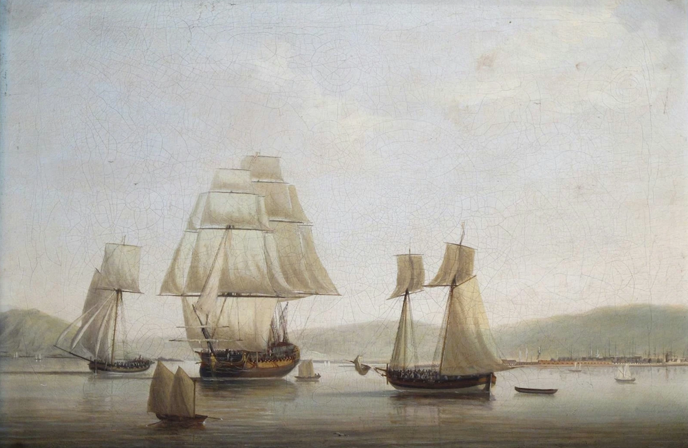 H.M.S. Lowestoffe (with Little Lucy) in Kingston Harbour - Dominic Serres
